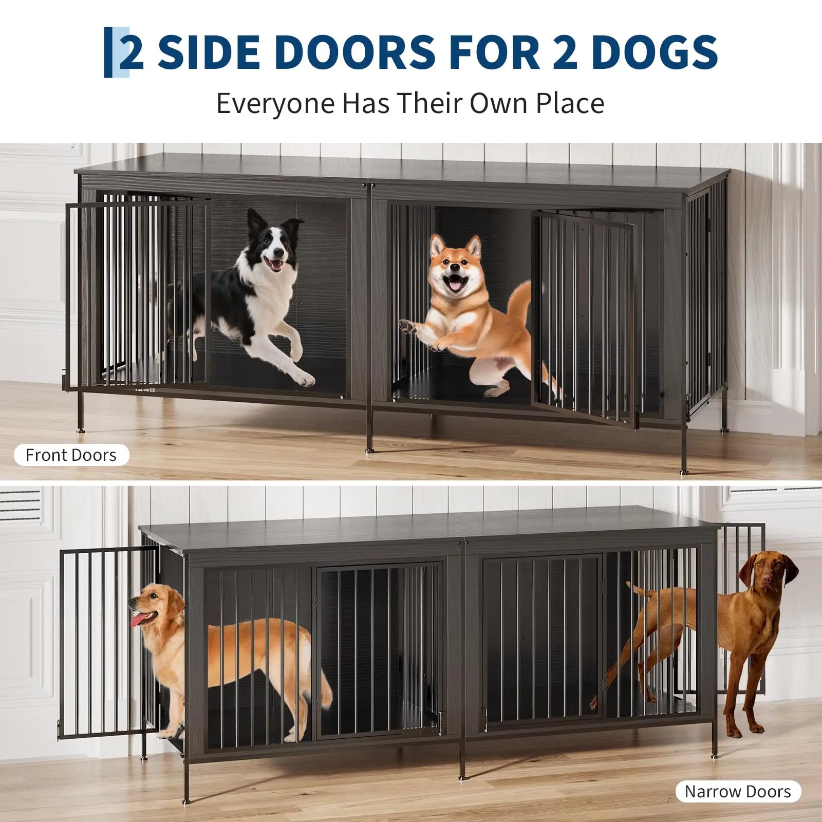 Spacious 78.74"W × 27.56"D × 32.68"H crate—no cramped spaces! Dogs stand, turn, and relax comfortably (cuts anxiety).