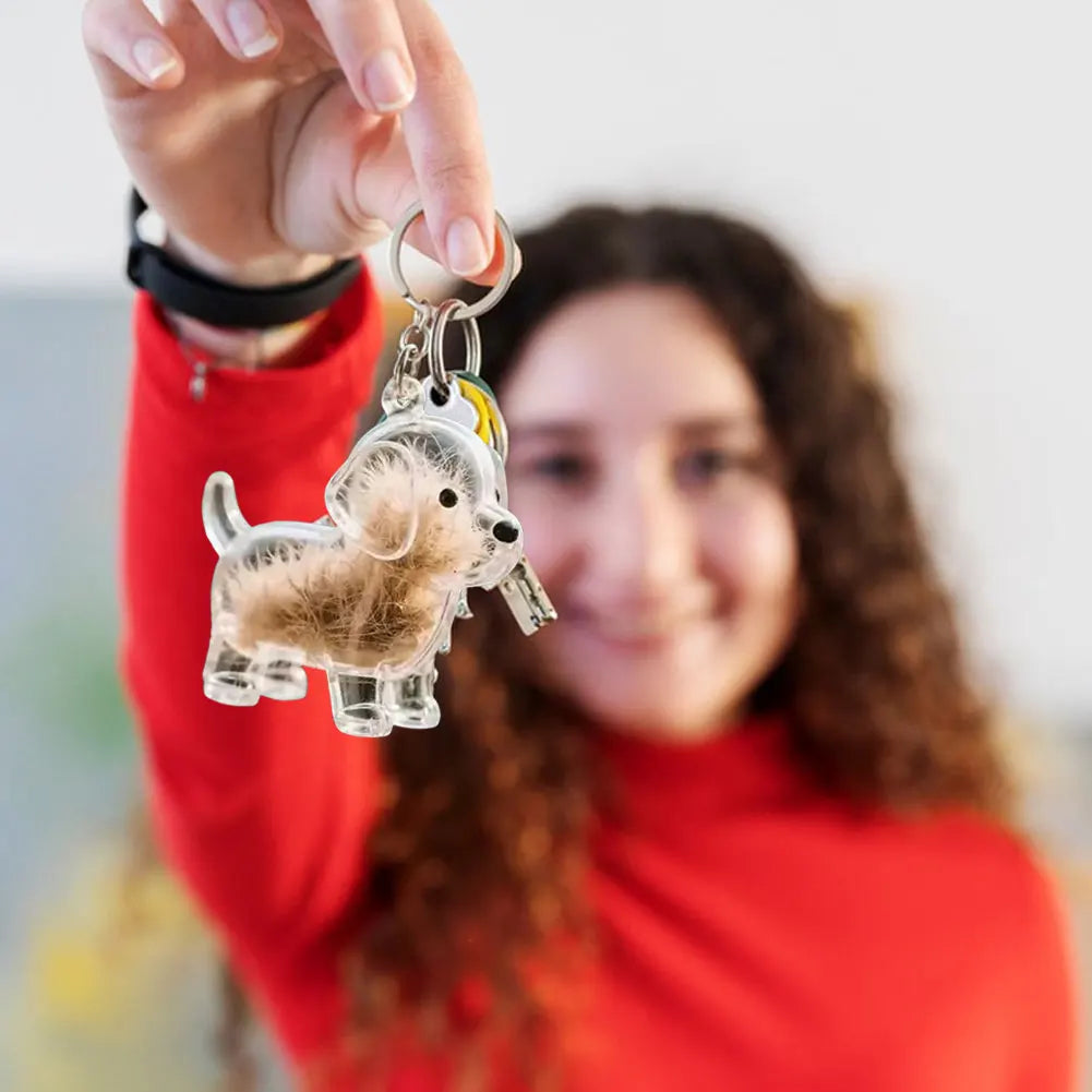 1.Cherished Keepsake for Pet Lovers: Preserve the memory of your furry friend with this dog hair collector keychain. Whether your dog is by your side or over the rainbow bridge, this transparent bottle charm gently holds a tuft of hair, symbolizing unconditional love.
