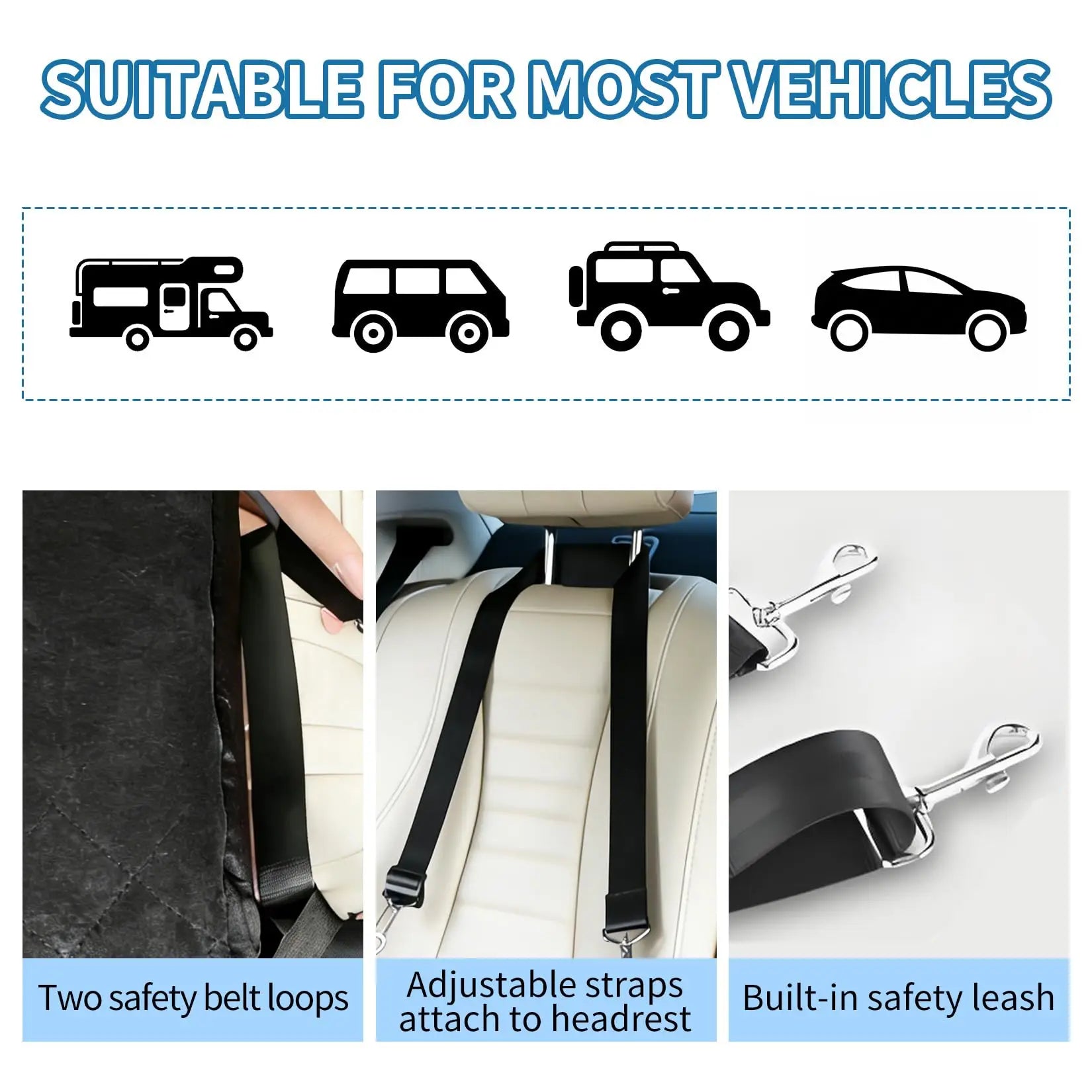 --- Double Safety, Peace of Mind: Secure your pet car seat with the car's seat belt and headrest strap, plus an integrated safety leash that attaches to your dog's harness. This triple-protection system ensures your pup stays safe, steady, and right where you want them during every drive.