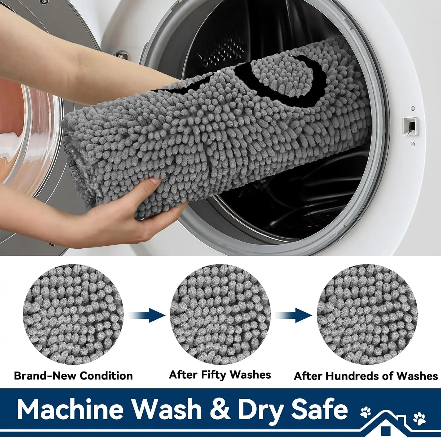 Introducing our premium dog door mat designed to keep your home clean while providing ultimate comfort for your furry friend. This versatile pet rug combines functionality with durability, making it an essential addition to any pet owner's household. 【Easy Cleaning & Maintenance】This high-quality dog mat is exceptionally easy to clean and maintain. It effectively absorbs liquids and traps dirt, mud, and debris from your pet's paws. The material quickly locks in moisture, preventing spills and messes from spreading. Simply place it in your washing machine when needed - no hand washing required. The mat maintains its appearance through multiple washes, saving you time and effort in household cleaning routines. 【Superior Comfort & Warmth】Featuring a thick 2000gsm Chenille construction, this pet rug provides exceptional cushioning and comfort for your dog or cat. The plush surface creates a cozy resting area that pets love, while the dense material insulates against cold floors during winter months. Your pet will enjoy a warm, comfortable space for napping and relaxing throughout the day. 【Advanced Anti-Slip Technology】Equipped with TPR backing that is odorless and environmentally friendly, this mat offers excellent anti-slip performance on various surfaces including smooth tiles, hardwood floors, laminate flooring, and concrete. The secure grip prevents shifting or sliding during active play sessions, ensuring your pet's safety while running, jumping, or playing on the mat. 【Exceptional Durability】Crafted from carefully selected premium fabrics, this door mat withstands daily wear from pets including scratching, chewing, and regular use. The reinforced edges and sturdy construction ensure long-lasting performance even with energetic pets. This represents excellent value as an economical choice that maintains quality over time. 【Versatile Placement Options】This multifunctional pet rug adapts to numerous locations in your home and beyond: Place it by entry doors as a paw-cleaning station; use it in living areas as a designated pet resting spot; position it near food bowls to catch spills; take it traveling for use in cars or pet carriers; or place it in crates for added comfort. The neutral design complements various home décors while serving practical purposes. 【Additional Features】The mat measures 30 inches by 20 inches (approximately 76cm x 51cm), providing ample space for medium to large dogs. Its quick-drying properties help maintain hygiene between washes. The water-absorbent material effectively manages moisture while being gentle on pet paws. Perfect for households with active pets who frequently go outdoors. Transform how you manage pet-related messes with this innovative dog door mat that combines practicality with pet comfort.